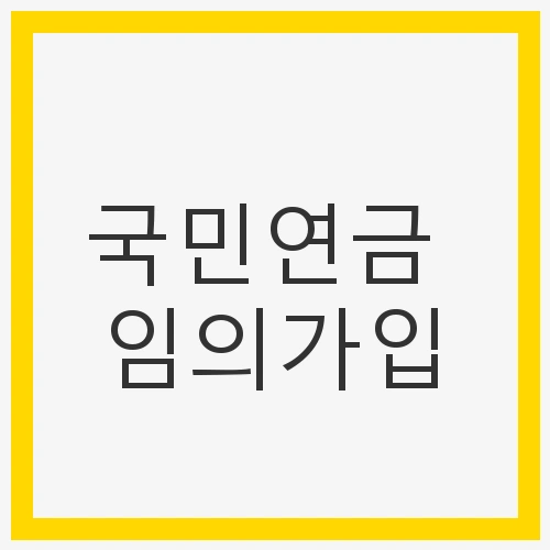 임의가입은 매우 간단하게 신청할 수 있습니다. 국민연금 홈페이지에 접속하거나 전화를 통해 신청할 수 있으며, 필요한 서류를 준비하여 제출하면 됩니다. 아래는 임의가입 신청 방법입니다: